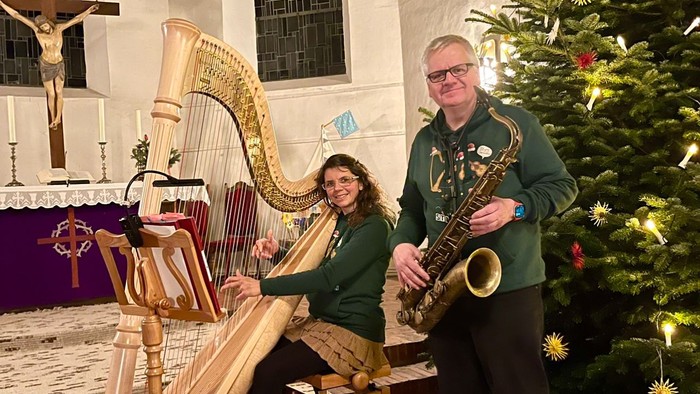 Es erklingen Harfe, Gitarren, Saxophon und Gesang.